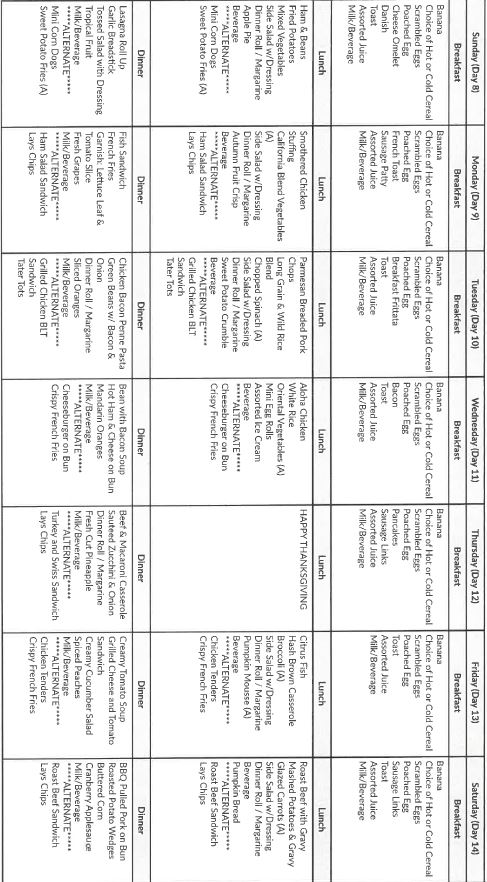 *MENU CHANGE: November 12 will be Pancake Lunch